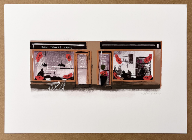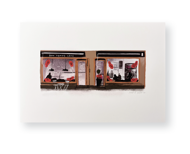 Bon Temps Café is an illustration of one of the most beautiful storefronts in Helsinki. Sized A4